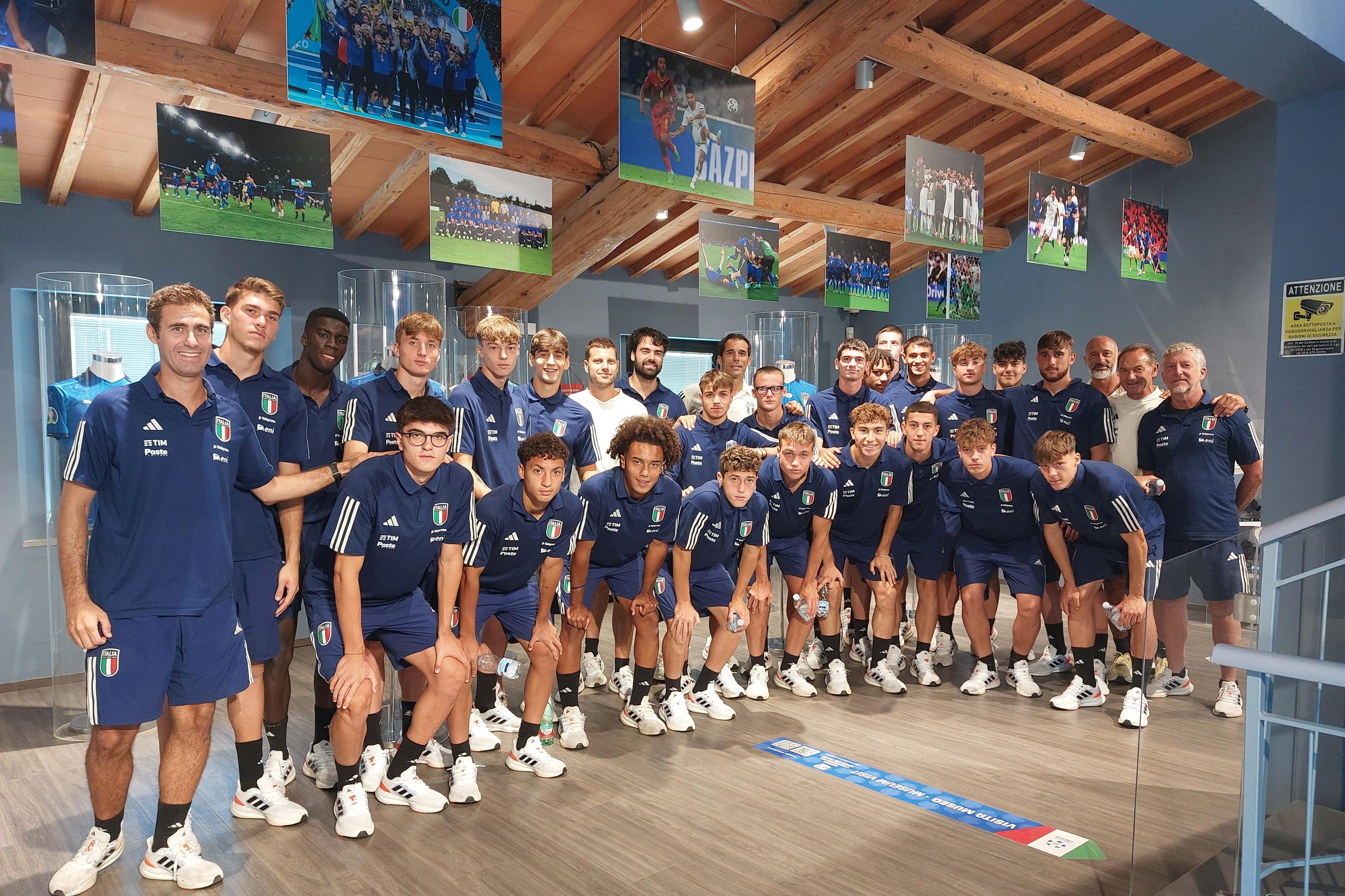Busy at Coverciano preparing for their two friendlies against Northern Ireland and the Netherlands, the National Under-19 team visited the Football Museum to relive the Azzurri's history through the memorabilia on display here: a morning of leisure, among trophies and old jerseys, to better understand what it means to represent Italy on the pitch.