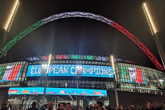 The Arch had already been lit up with the Tricolour on 27 March 2020, when Southgate and Mancini's national teams were due to face each other at Wembley in a friendly that was later cancelled due to Covid-19 and the FA had thus decided to send a strong message of solidarity to Italy. The last appearance at Wembley was in the Finalissima, lost 3-0 in June 2022 to Argentina.